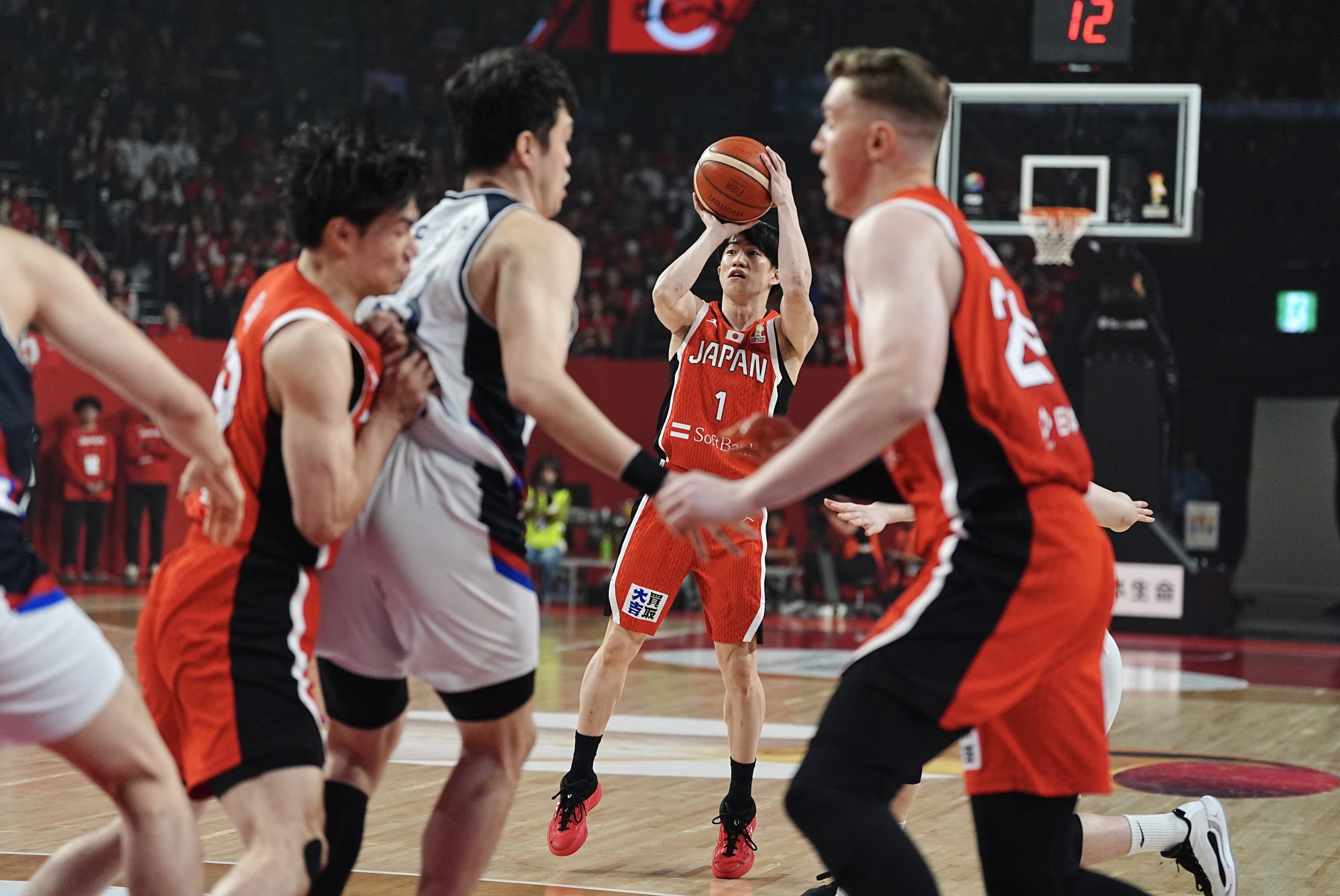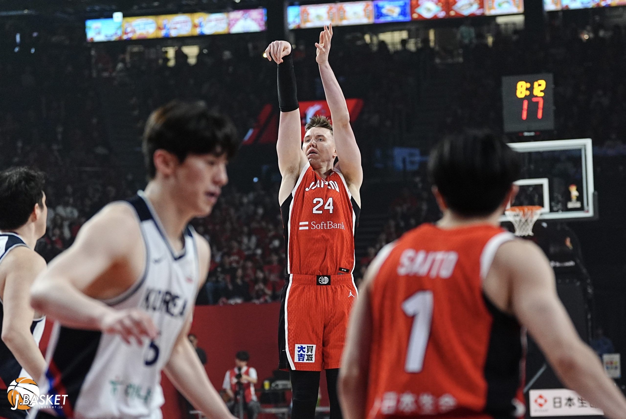 試合は序盤から一進一退。リードチェンジは18回、同点は8回。第4クォーターに入っても流れはどちらにも傾かず、会場の緊張感は最後まで途切れなかった。残り1分、3点リードの場面で、ジョシュ・ホーキンソンのスクリーンを使った齋藤拓実が3ポイントを沈める。値千金の一撃。日本はそのリードを守り抜き、沖縄で価値ある1勝を手にした。