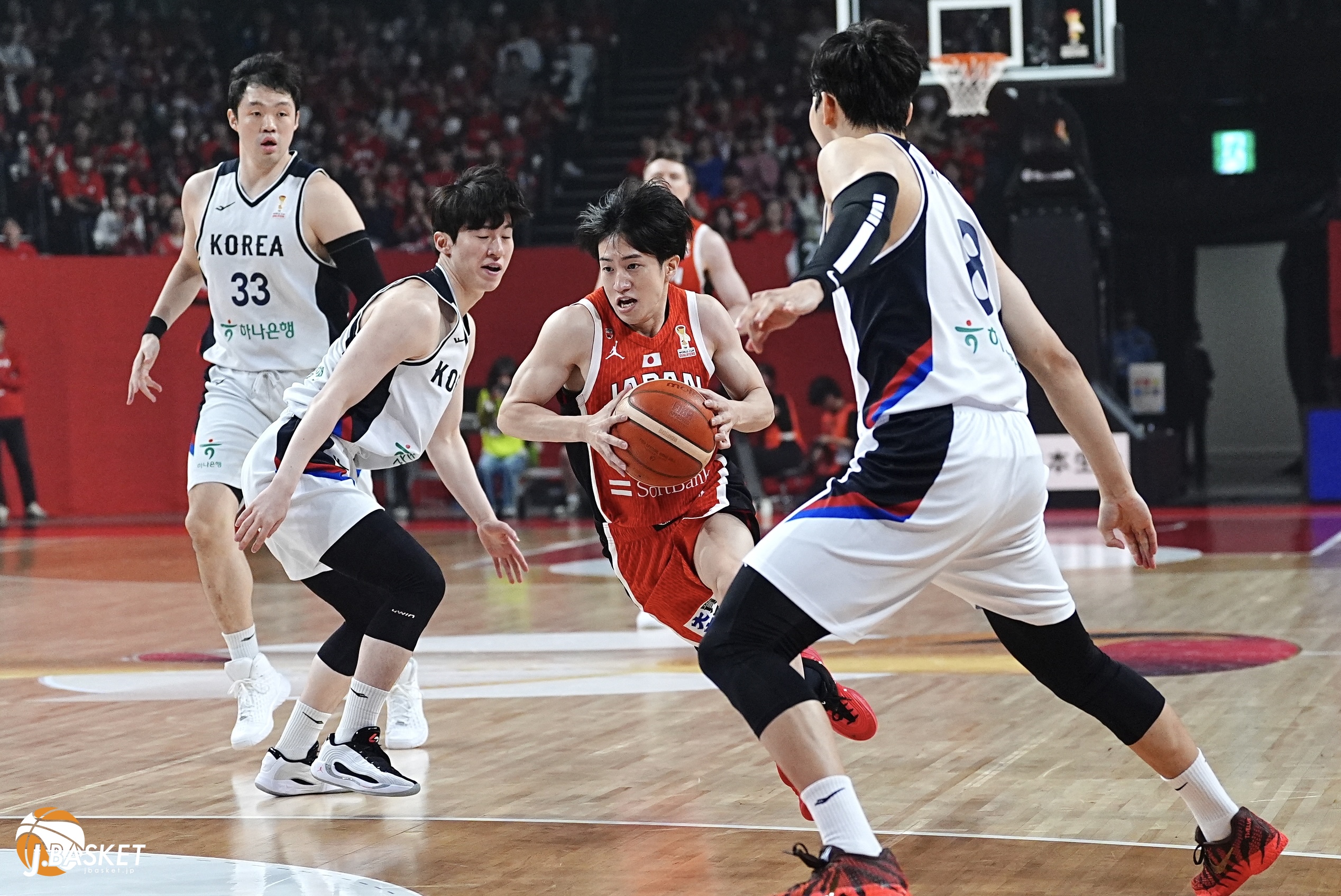 3月1日、沖縄サントリーアリーナで行われたFIBAバスケットボールワールドカップ2027アジア地区予選Window2。男子日本代表は韓国代表を78-72で下し、桶谷大ヘッドコーチ就任2戦目で新体制初白星を挙げた。